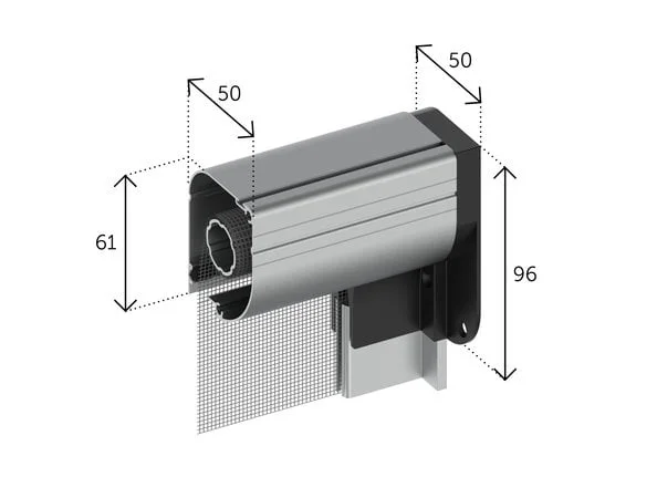 24V tubular motor (installed in the fly screen roller box) with external transformer (in 220V – out 24V) and control switch complete with box, insert and external mask.
