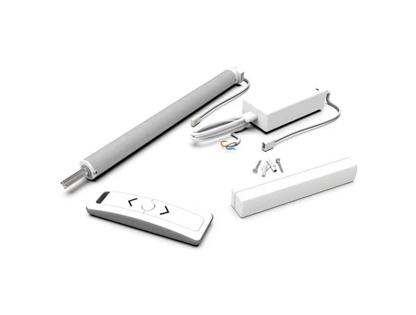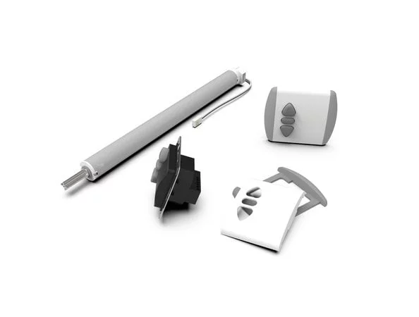 24V tubular motor (installed in the fly screen box) with external transformer (in 220V – out 24V), wireless remote control and receiver.